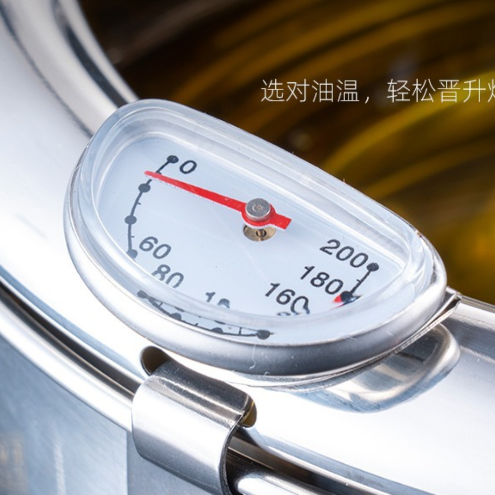Com o termômetro acoplado, você sabe exatamente quando o óleo atinge a temperatura ideal para fritar.