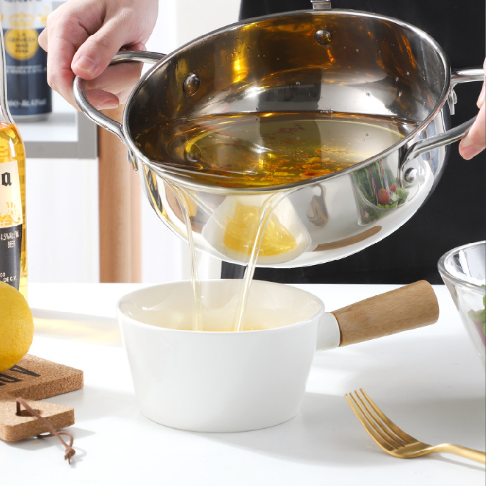 Prepare frituras deliciosas com muito mais controle, segurança e praticidade. A Panela Fritadeira | Kit Plus foi desenvolvida para quem ama cozinhar e quer resultados profissionais em casa. Ela acompanha termômetro integrado e grill interno para escorrer o óleo, garantindo frituras mais sequinhas e saborosas.